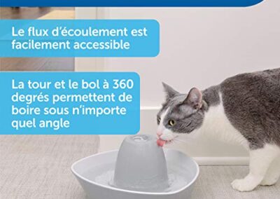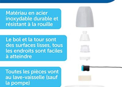 - BOISSON FLEXIBLE : La fontaine est accessible de tous les côtés et votre animal peut boire au choix dans la tour ou dans le bol