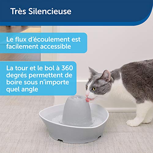 - TRÈS SILENCIEUSE : l’eau ruisselle doucement dans le bol d’eau via la tour et la pompe est très silencieuse. Cette fontaine convient également aux animaux domestiques sensibles ou peureux