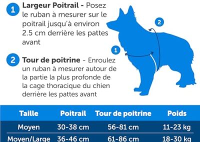 • FACILE À METTRE ET À ENLEVER: Le harnais de poitrine a 4 points de réglage, ce qui vous permet d’ajuster le harnais individuellement à votre chien. Les 2 boucles facilitent la mise en place