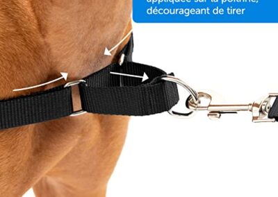 • PAS D’ÉTOUFFEMENT OU DE TOUX: Comme le harnais est solidement fixé sur le poitrail, il n’y a aucune pression sur la trachée sensible ; ainsi votre chien peux toujours respirer librement