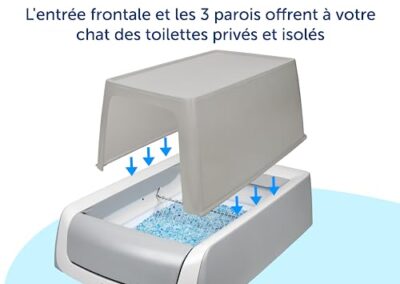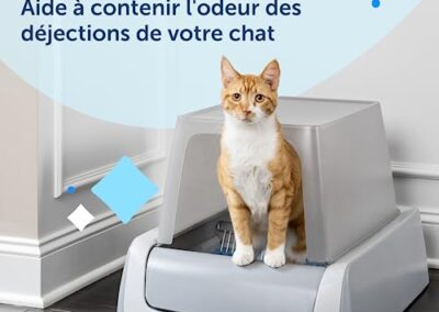 - CONTRÔLE DES ODEURS : l’ajout d’un couvercle à votre bac à litière permet d’empêcher les mauvaises odeurs de se répandre