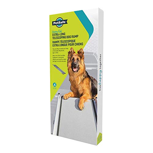 PetSafe Rampe télescopique extra longue, latérale, transportable pour chiens Happy Ride. Convient à différents types de véhicules. Cadre aluminium résistant jusqu’à 136 kg, surface à traction élevée