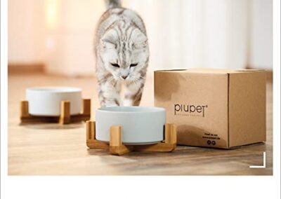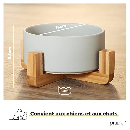 PiuPet® Bol pour Chats et Chiens 2x850ml I Gamelle Chat ceramique I Passe au Lave-Vaisselle I Gamelle pour Chien I Gris + Blanc