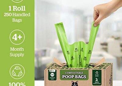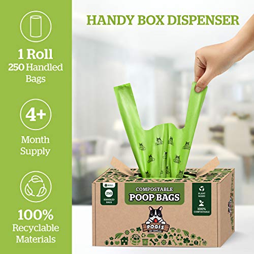 Pogi’s Sacs à déjections canines compostables – 250 sacs à déjections canines avec poignées faciles à nouer, anti-fuites, à base de plantes, certifiés ASTM D6400