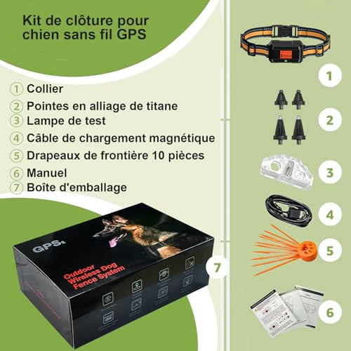 POIIOPY Clôture Anti-Fugue sans Fil GPS pour Chien Extérieur, Cloture Electrique pour Chien avec Puce D’amplification du Signal GPS de 3e Génération, IPX7 Étanche Collier GPS pour Chien, Rayon 1000m