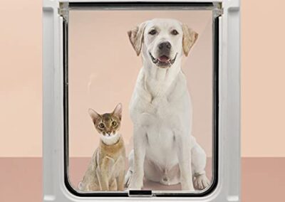 - Protection des animaux de compagnie : le bord est lisse et sans bavures, protège les animaux de compagnie contre les rayures et peut entrer et sortir librement des deux côtés. Cette porte pour chien dispose d’une plaque arrière qui peut être insérée et verrouillée lorsqu’elle n’est pas utilisée.
