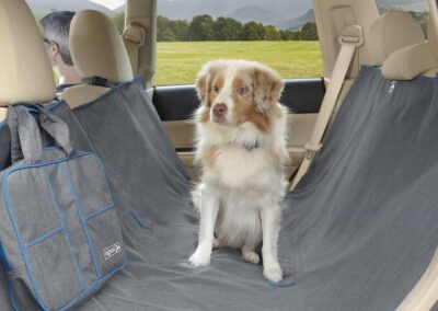Heather Hammock est un protège-siège pour l’arrière de votre voiture qui se transforme en nid confortable pour votre compagnon pendant les voyages en voiture.