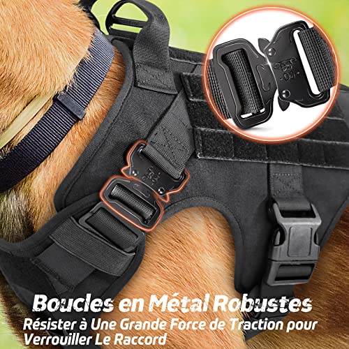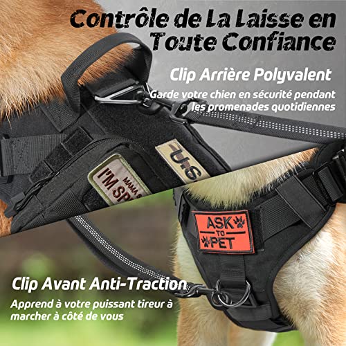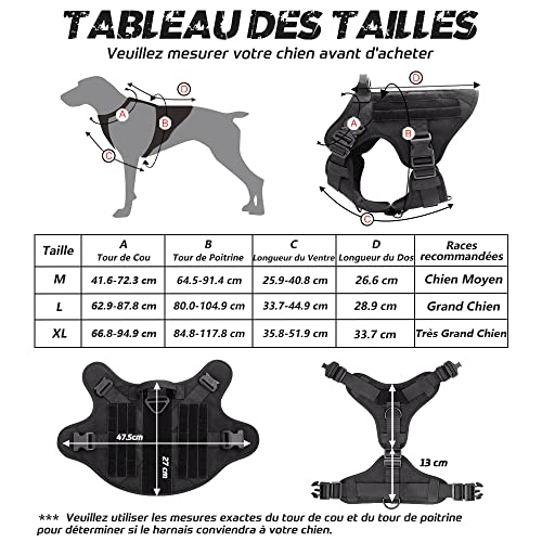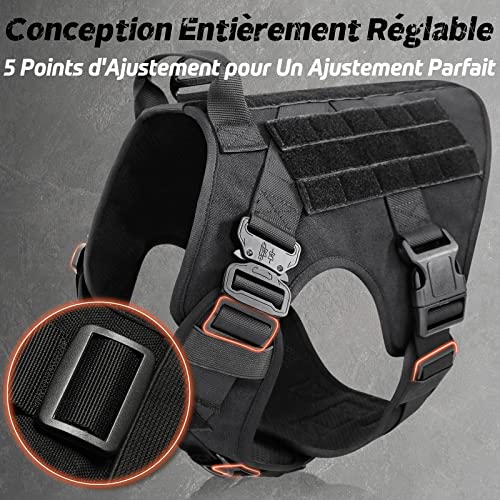 - Utilisation et Ajustement Facile: Vous pouvez mettre et retirer ce harnais tactique chien facile avec 4 boucles à dégagement rapide sans aucun tracas. De plus, les 5 sangles entièrement réglables (2 sur épaules, 2 sur poitrine, 1 sur ventre) permettent un ajustement parfait avec une mobilité maximale