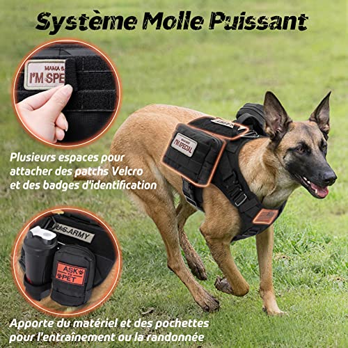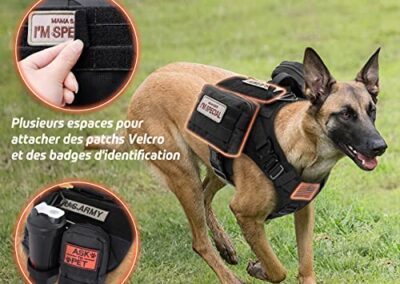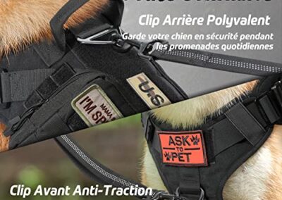 - Conception Pratique pour Une Utilisation Polyvalente: Le système Molle de ce harnais anti traction pour chien est équipé des deux côtés pour les pochettes, les bouteilles d’eau et les équipements tactiques pour chiens. Plusieurs panneaux auto-agrippants pour des patchs et des badges de moral pour mettre en valeur la personnalité de votre chien. Une large gamme d’utilisation pour le service personnel, l’application de la loi, la chasse ou les loisirs de plein air