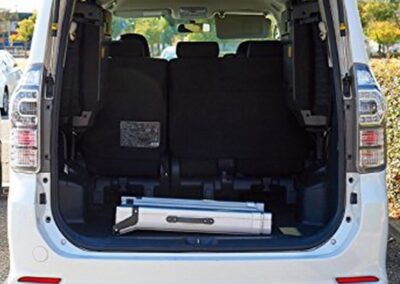 • La conception télescopique à trois pièces permet un rangement plus compact – plus courte de 30 % par rapport à notre rampe de luxe standard.