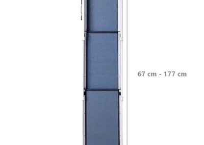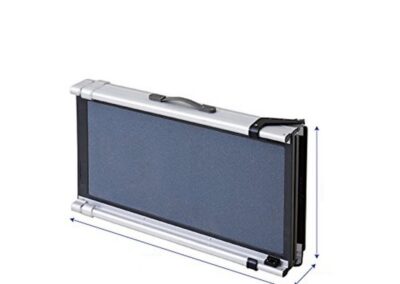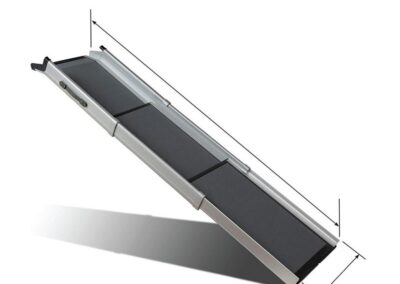 • Cette rampe doit sa grande facilité d’utilisation à sa conception télescopique. Il vous suffit de la faire glisser pour la déployer en vue de son utilisation et de la faire glisser à nouveau pour la rétracter avant de la ranger. Plus aucun pliage et dépliage fastidieux n’est requis.