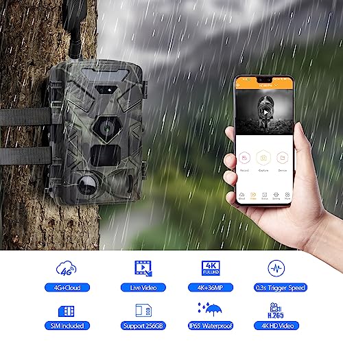 RecorCam 4G/LTE 4K 36MP App Caméra de Chasse, Caméra de Surveillance Prise en Charge de La Vidéo en Temps Réel, Vision Nocturne Infrarouge Invisible Angle de détection de 120° avec Carte SIM & CarteSD