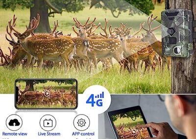 • 4G Connectivité sans fil robuste : Nos caméra de chasse sont équipées d’un réseau cellulaire 4G LTE fiable et d’une antenne à haut gain pour une meilleure couverture. La caméra de chasse fonctionne avec une carte SIM (incluse) afin que vous puissiez recevoir n’importe quelle photo ou vidéo sur votre téléphone portable (sans restriction de distance), gérer les paramètres de la caméra, partager des images et surveiller l’état de la caméra.