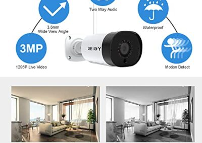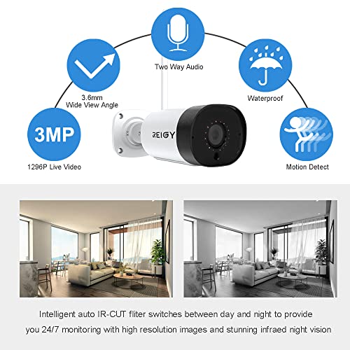 REIGY 3 MP Caméra IP Wi-Fi Audio bidirectionnelle, ajout caméra pour REIGY Kit vidéosurveillance