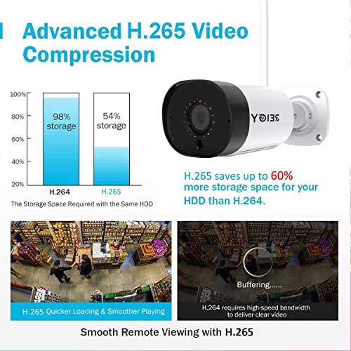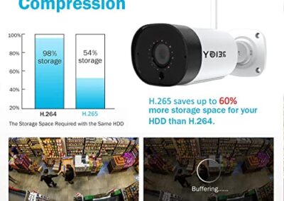 - 【Compression Vidéo Avancée H.265】Par rapport à la technologie H.264, la technologie intelligente H.265 réduit la bande passante du réseau et économise 30% à 50% d’espace disque supplémentaire, économisant ainsi plus de coûts. Il améliore également l’efficacité de la transmission et permet aux caméras de fournir une qualité d’image ultra HD.