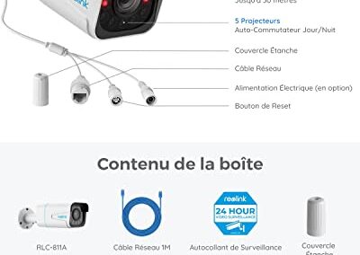 - Installation PoE plus Rapide et Simple : Grâce à la technologie PoE (Power over Ethernet), cette caméra poe extérieure peut transmette des vidéos et s’alimenter via un seul câble réseau. Vous pouvez installer cette caméra de sécurité rapidement et facilement pour une connexion fiable. Aucun adaptateur d’alimentation inclus