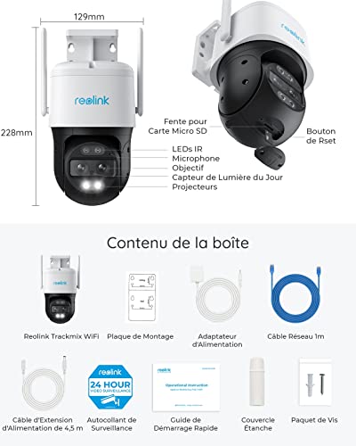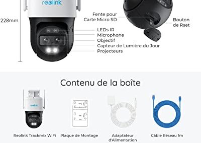 Reolink 4K PTZ Camera Surveillance WiFi Exterieure 2,4/5 GHz à Double Objectif, Zoom 6X, Détection Humaine/Véhicule/Chat/Chien, Suivi Automatique, Vision Nocturne Couleur, H.265, Trackmix WiFi