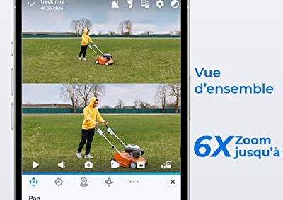- Suivi Automatique et Zoom 6X : Le téléobjectif et l’objectif PT à grand angle de cette camera de surveillance wifi permettent un suivi automatique et un zoom hybride 6X pour suivre de près et se concentrer sur la cible. La double vue vous apporte une vue d’ensemble ultra large et un gros plan clair en même temps.