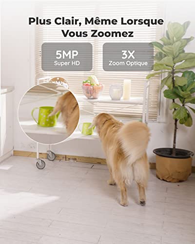 - SUPER HD 5MP & VISION NOCTURNE : Dotée de Super HD 5MP et zoom optique 3X, la caméra de surveillance wifi capture chaque détail clairement et vous permet de zoomer pour voir les détails qui vous intéressent le plus. Les LED IR intégrées apportent une excellente vision nocturne jusqu’à 12m dans la nuit