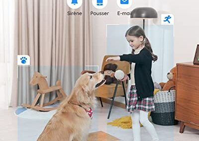 - SUIVI AUTOMATIQUE DE PERSONNES, CHIENS, ET CHATS : Cette caméra PTZ à suivi automatique peut distinguer les personnes et les animaux domestiques des autres objets et les suivre pour vous permettre de voir tous leurs mouvements