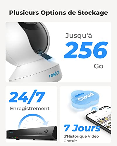 - INSTALLATION FACILE & STOCKAGE FLEXIBLE : Allumez la caméra surveillance et installez-la en quelques minutes avec un câble Ethernet ou avec une connexion WiFi. Elle permet d’effectuer des enregistrements déclenchés par des mouvements, en continu 24/7 ou programmés. Les vidéos peuvent être stockées sur la carte micro SD (jusqu’à 128 Go, non incluse), le NVR Reolink (vendu séparément), Reolink Cloud ou le serveur FTP