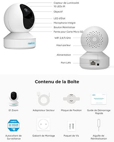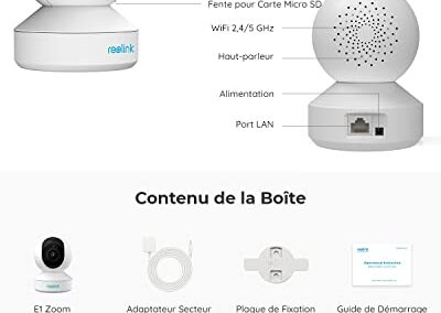 - WIFI 2,4GHZ / 5GHZ & CONTRÔLE FACILE : Choisissez le WiFi 5GHz pour obtenir une connexion plus rapide et un streaming vidéo plus fluide. Passez à la bande 2,4 GHz pour les transmissions à longue distance. Vous pouvez simplement contrôler E1 Zoom via le logiciel Reolink (Application/Client Reolink gratuit sur les téléphones iOS ou Android, Windows PC ou Mac)
