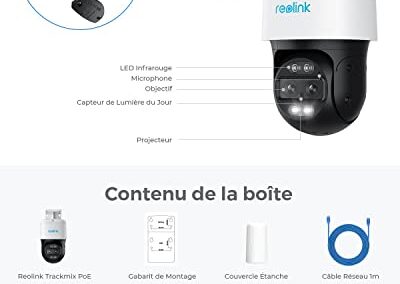 - Configuration Facile avec PoE: Grâce à la technologie PoE, cette caméra IP peut charger des images 4K avec une stabilité inégalée. Vous pouvez installer la caméra filaire rapidement et facilement avec un seul câble réseau. (Aucun adaptateur d’alimentation inclus)