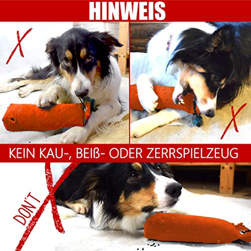 - Robuste : grâce au tissu en toile robuste (600 g/m²), nos mannequins sont extrêmement résistants à la déchirure. Mais ce sont des objets de travail et non des jouets. Par conséquent, ne donnez à votre chien le mannequin que sous la surveillance ou lors de l’entraînement du chien.