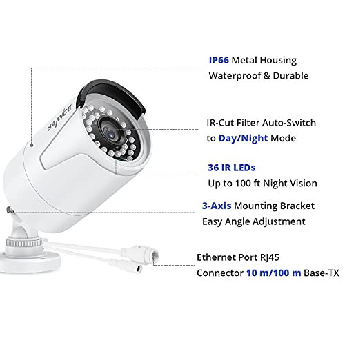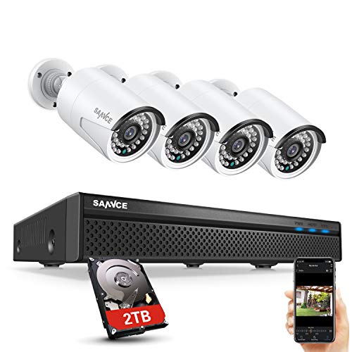 SANNCE 5MP POE Système kit de Surveillance 8CH NVR H.264+ avec HDD 2TB et 4 IP caméra de vidéosurveillance IP66 Imperméable Extérieure/Intérieure et Alerte par E-Mail