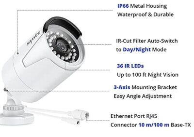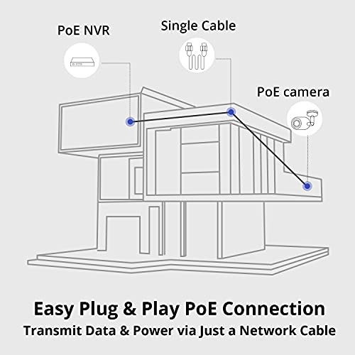- 【Setup Configuration PoE facile】 Contrairement au kit de caméra analogique, ce système de sécurité PoE n’a besoin que d’un câble Ethernet pour transmettre le signal vidéo et alimenter la caméra simultanément.