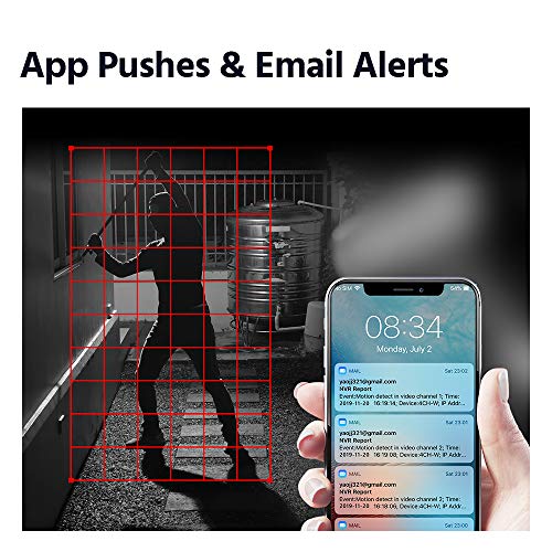 - 【Accès à distance stable】La caméra WiFi est automatiquement couplée au NVR. Avec l’application gratuite, vous pouvez vérifier les images en direct 3MP actuelles sur votre téléphone portable.