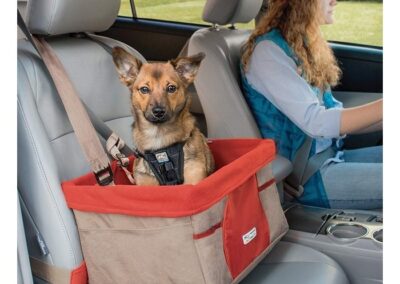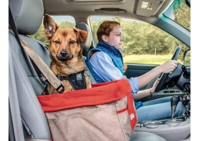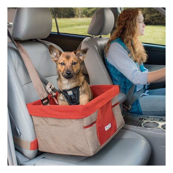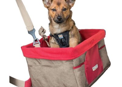 Donnez à votre chiot son propre siège auto où il pourra voir par la fenêtre et profiter du trajet. La version élégante en tissu chiné pour chien permet de ne pas vous gêner dans la conduite et de provoquer un accident. À l’avant ou à l’arrière, votre chiot est à portée de main.