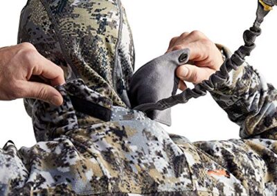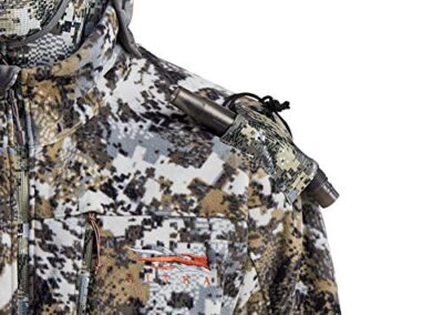 - Capuche amovible : une capuche amovible avec des ports auditifs spécialisés qui améliorent la capacité d’entendre les cerfs s’approcher et les panneaux PolarTec Alpha Direct à double couche retiennent la chaleur.