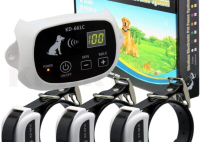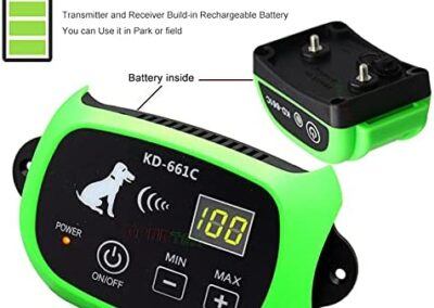 Le système rechargeable facile à installer est parfait pour les chiens de toutes tailles. Le système de clôture sans fil pour animaux de compagnie utilise un signal radio constant pour créer une «zone de séjour». Avec l’émetteur comme centre, la télécommande a un rayon maximum de 500 mètres et une couverture maximum de 78 hectares. Votre chien peut se déplacer librement et en toute sécurité. Le collier récepteur porté sur le chien peut recevoir le signal. Si votre chien s’aventure dans et hors de la « zone de sécurité » (ce qui est rare une fois correctement dressé), il entendra une tonalité d’avertissement, mais c’est complètement sûr et humain.