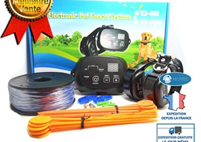 - [Détails]: clôture électronique filaire pour animaux de compagnie KD-660B, grâce à une impulsion variable pour stimuler les animaux à rester dans la zone que vous définissez, le fil enterré transmet des signaux radio inoffensifs pour faire fonctionner le système, le récepteur est étanche, rechargeable, économique Durable, quand l’animal est proche de la frontière, l’émetteur peut émettre avec sensibilité des signaux de stimulation pour rappeler au chien de retourner dans une zone sûre.