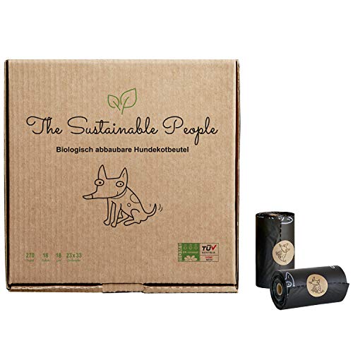 The Sustainable People 270 Sacs à déjections canines biodégradables – certifiés OK compost HOME – 100 % biodégradables – grands & extra épais (18 µm), sûrs & résistants à l’humidité