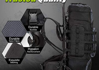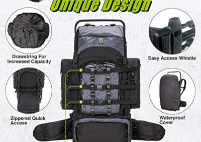 - Design convivial : TideWe s’engage à votre expérience de chasse ultime grâce à son design unique. La fermeture éclair à accès rapide vous aide à sortir les équipements du grand sac facilement et facilement. Ce sac à dos de chasse avec cadre est compatible avec les systèmes d’hydratation de 2 ou 3 litres, vous gardant hydraté pour ces longues promenades dans les bois. La housse de pluie imperméable est parfaite pour garder tous vos équipements au sec en cas de pluie. Système de cerclage de haute qualité pour une charge plus lourde.