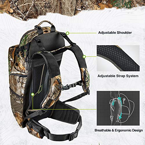 TIDEWE Sac à dos de chasse 3400 cu, cadre silencieux pour arc, fusil, pistolet