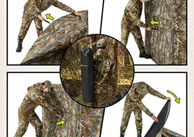 • [Facile à transporter et à assembler[ Design unique sans procédure complexe, vous permet d’installer et de démonter le store rapidement. Un sac de transport léger est également inclus avec le store. Vous pouvez emporter le store n’importe où pour la chasse au cerf, la chasse à la dinde, les élans, etc.