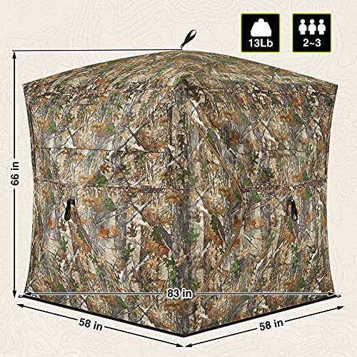 • [Espace adéquat] Dimensions : 167,6 cm de hauteur, moyeu à moyeu 190,5 x 190,5 cm, et avec un espace au sol de 147,3 x 147,3 cm. TIDEWE Les stores de chasse peuvent accueillir confortablement deux ou trois chasseurs.