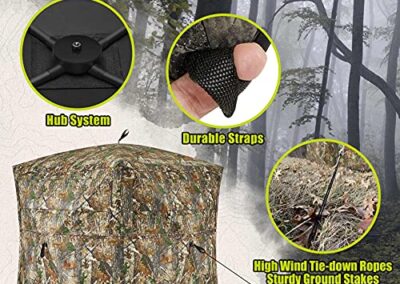 • 【Favorable à la chasse】Les stores de chasse de sol TIDEWE consistent de fenêtres coulissantes silencieuses sur trois côtés, ce qui vous aidera à rester indécelable pendant la chasse. Les passants avec le camouflage qui recouvre l’ensemble du store vous assurent que votre store ne deviendra qu’un avec l’habitat environnant.