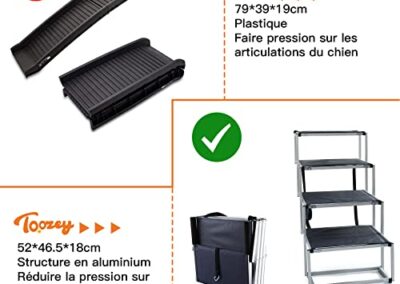 - 🐶【BON POUR LA SANTÉ DU CHIEN】 – Les escaliers de voiture pour chien Toozey sont conçus pour les grands chiens, les chiens de taille moyenne et les animaux plus âgés souffrant de maladies articulaires ou dorsales ou d’autres problèmes de mobilité. Il protège votre chien des exercices intenses et monte et descend facilement.