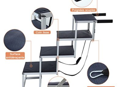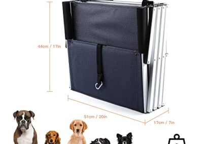- 💪【ROBUSTE ET ANTIDÉRAPANT】 – Comparé à d’autres rampes pour chien en plastique, l’escalier pour chien voiture Toozey est fabriqué à partir d’une structure en aluminium et utilise la technologie de rivet pour toutes les interfaces, suffisamment solide. Les marches de grande surface sont conçues avec un tissu Oxford 1680D premium antidérapant et indéchirable + coton perlé + contreplaqué + tissu Oxford 600D, offrent une rampe voiture robuste et sécurisée. Le poids de charge max jusqu’à 68 kg.