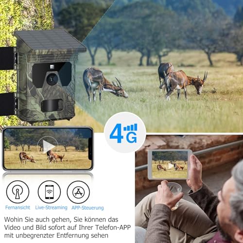 VanBangTec Caméra de Chasse Solaire 4G 2K 30MP, Camera de Chasse Vision Nocturne avec App Gratuite Carte SIM, Vidéo en Temps Réel, Détecteur de Movement, 940nm Infrarouge LEDs, Étanche