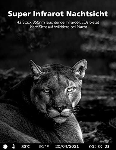 - Vitesse de Déclenchement Rapide et Reconnaissance Grand Angle : la vitesse de déclenchement rapide vous permet de capturer tous les moments merveilleux et passionnants de la faune en temps réel, même à 65 pieds de distance. De plus, le capteur PIR grand angle et la caméra animalière avec objectif grand angle assurent une couverture maximale