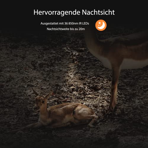 - 【Vision Nocturne Avancée et Étanche IP66】 Équipée de 36 LED de 850nm, la caméra de chasse vous permet d’obtenir des images claires la nuit. La caméra animalière et le panneau solaire sont étanches IP66, protégeant votre caméra animalière de la pluie et de la poussière, même dans des environnements difficiles comme le désert ou la forêt tropicale
