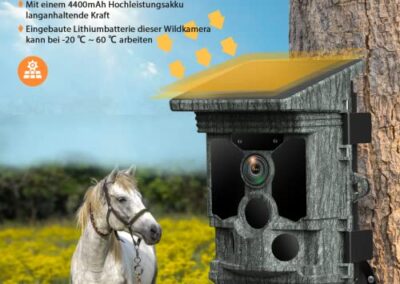 - 【Caméra de Chasse à Energie Solaire avec Innovation Révolutionnaire】 La caméra de chasse solaire est une combinaison de caméra de chasse et de panneau solaire. peut être chargé via l’USB inclus, elle peut également être alimentée par un panneau solaire sur la caméra, le panneau solaire au-dessus de la caméra convertit la lumière du soleil en électricité en absorbant la lumière du soleil, ce qui vous permet d’économiser beaucoup de batterie