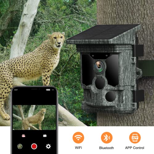 VOOPEAK Caméra de Chasse à Panneau Solaire 4K 30fps WiFi 36MP Bluetooth Caméra de Chasse avec Vision Nocturne Activée par Le Mouvement, Etanche IP66