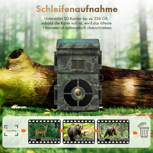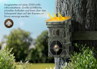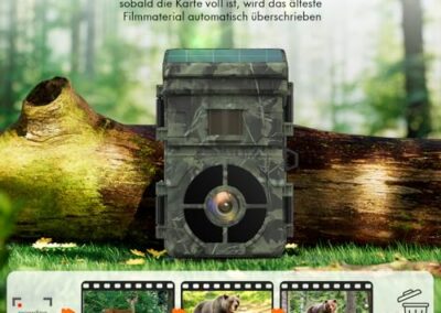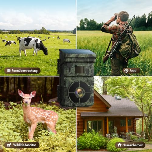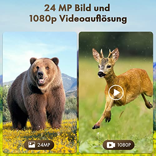 - Photos 24 MP et vidéo HD 1080p : la caméra solaire de chasse enregistre des vidéos natives 1080p et des images claires de 24 MP dès qu’un mouvement est détecté. Vision nocturne avancée pour vous montrer des détails de haute qualité de jour comme de nuit.