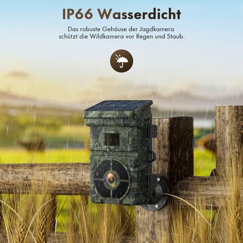 - Étanchéité IP66 et multi-usage : le boîtier robuste et étanche de la caméra de chasse protège la caméra de la pluie et de la poussière. L’étanchéité IP66 garantit le bon fonctionnement de la caméra dans des environnements difficiles tels que les déserts, les prairies et les forêts tropicales humides. Vous pouvez utiliser la caméra de chasse pour l’observation des animaux et la chasse, la sécurité de la maison/propriété, les zones agricoles, les cultures d’élevage à distance, etc.
